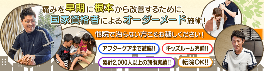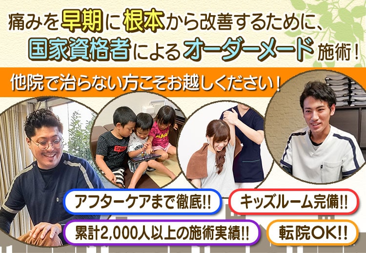 痛みを一時的に改善させるだけの施術ではなく、再発しないようにするための施術を行っておりますので、まずはご相談ください。
